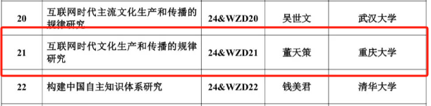董天策教授主持的课题“互联网时代文化产生和传播的规律研究”获得立项。本批课题列为马克思主义理论研究和建设工程重大项目,同时列为国家社科基金重大项目。