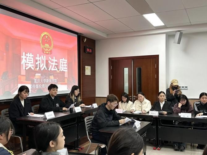 此次课堂实践也让学生收获颇丰。担任书记员的王林棋在课后心得中写道:“模拟法庭让我体会到程序正义的重要性,无论是司法还是传媒,细节失误都可能引发严重后果,未来作为传媒人需建立全链条风险意识。”“通过参与情景剧拍摄与庭审,我深刻认识到传媒工作者手握舆论放大器,必须兼具法治素养与伦理底线,每一个镜头都要经得起法律与道德的检验。”裴伊竹则表示。