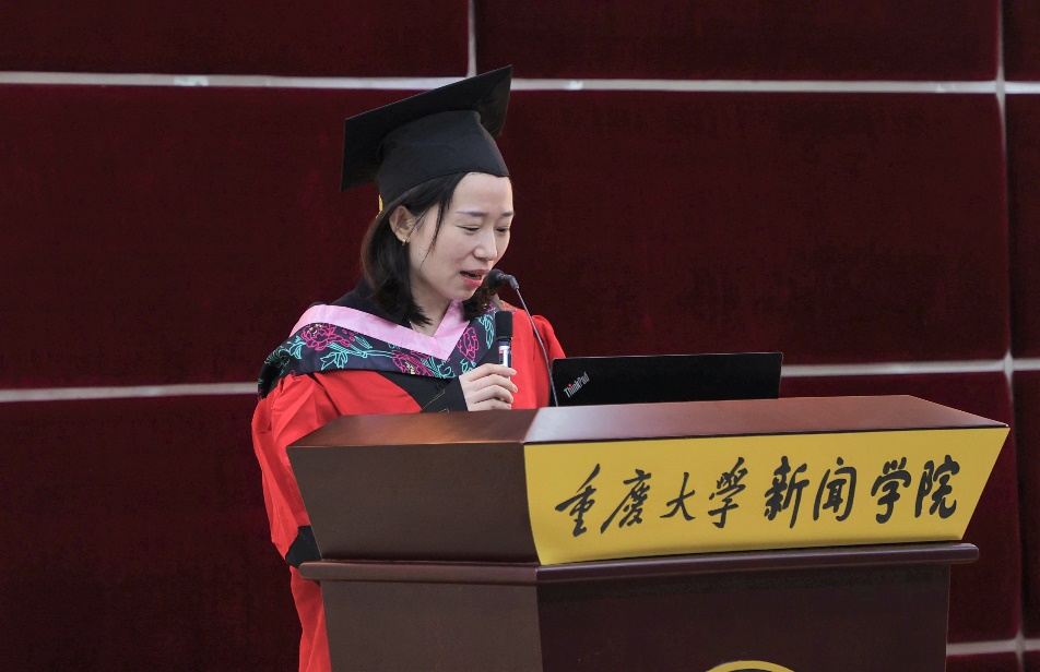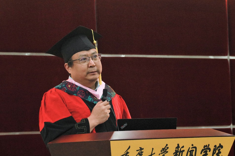 名誉院长马胜荣,党委书记凌晓明,院长董天策,副院长郭小安等学院领导及部分老师、本科毕业生、研究生毕业生参加典礼。典礼由党委副书记郭秀荣主持。