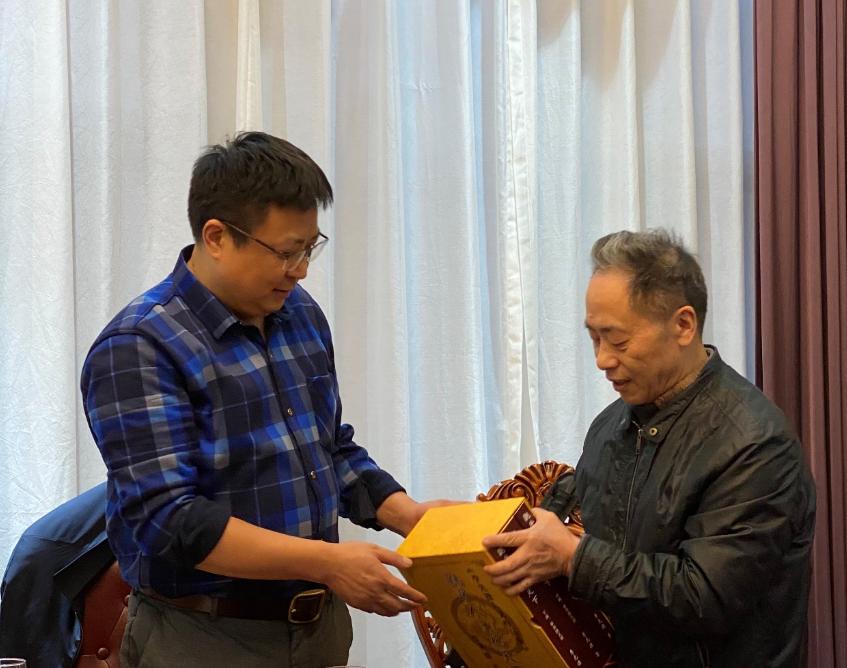 退休教师李光德教授、杜承南教授向学院赠送了他们的著作和译著,凌晓明代表学院接受了赠书并表达了感谢。