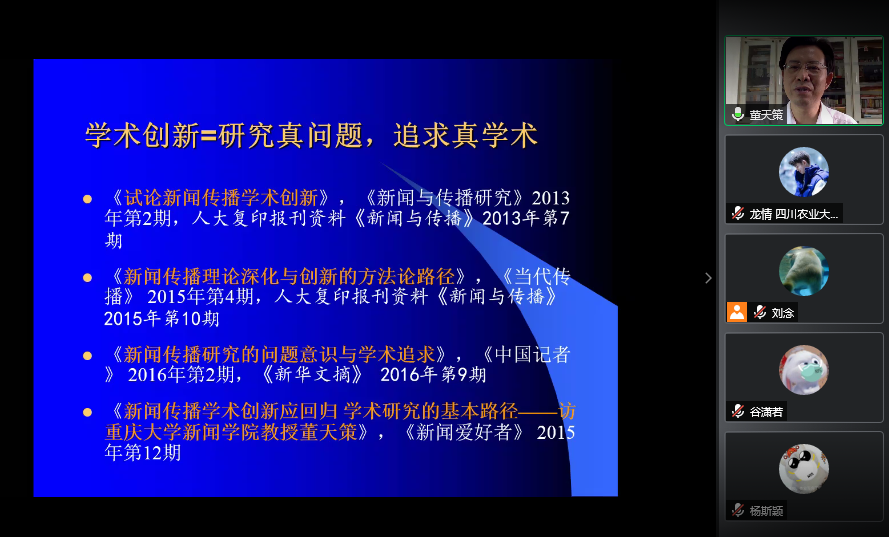 院长董天策在宣传片中寄语重大新闻学子好学求真,追求卓越。