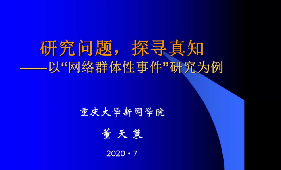读研意味着什么?董院长说,研究生是在研究中学习,要在学习中学会研究。而研究或者说学术,本质上以学术创新为宗旨。他还讲解了学术硕士和专业硕士的区别,为同学们选择专业提供了意见。接下来,围绕网络群体性事件,董院长完整地展示了优秀学术研究的进行过程,并针对学术创新等问题与同学们展开了激烈的讨论。