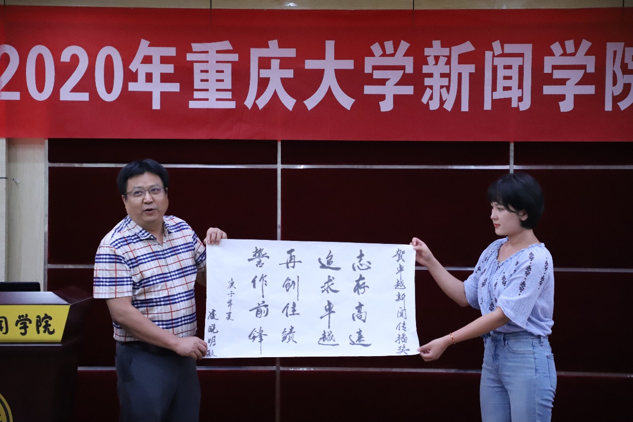 凌晓明书记在总结发言时表示,同学们在实习和写论文中都付出了很多的努力,他非常认同学院以这种方式对付出努力的同学们给予表彰和奖励。他为同学们题写了十六字祝福:志存高远、追求卓越、再创佳绩、誓作前锋。祝福同学们再接再厉,砥砺前行。