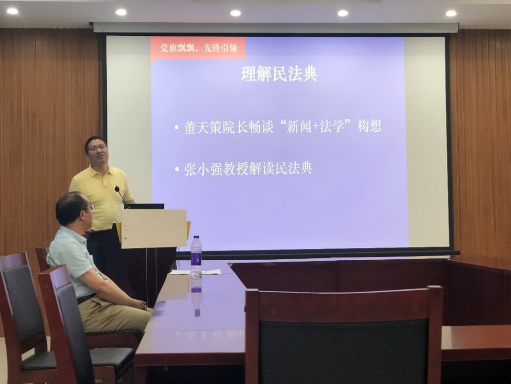 “庆祝建党99周年”主题研讨活动之民法典的学习和研讨如期举行。党委书记凌晓明、院长董天策等学院党委领导全程参与了本次学习研讨活动。