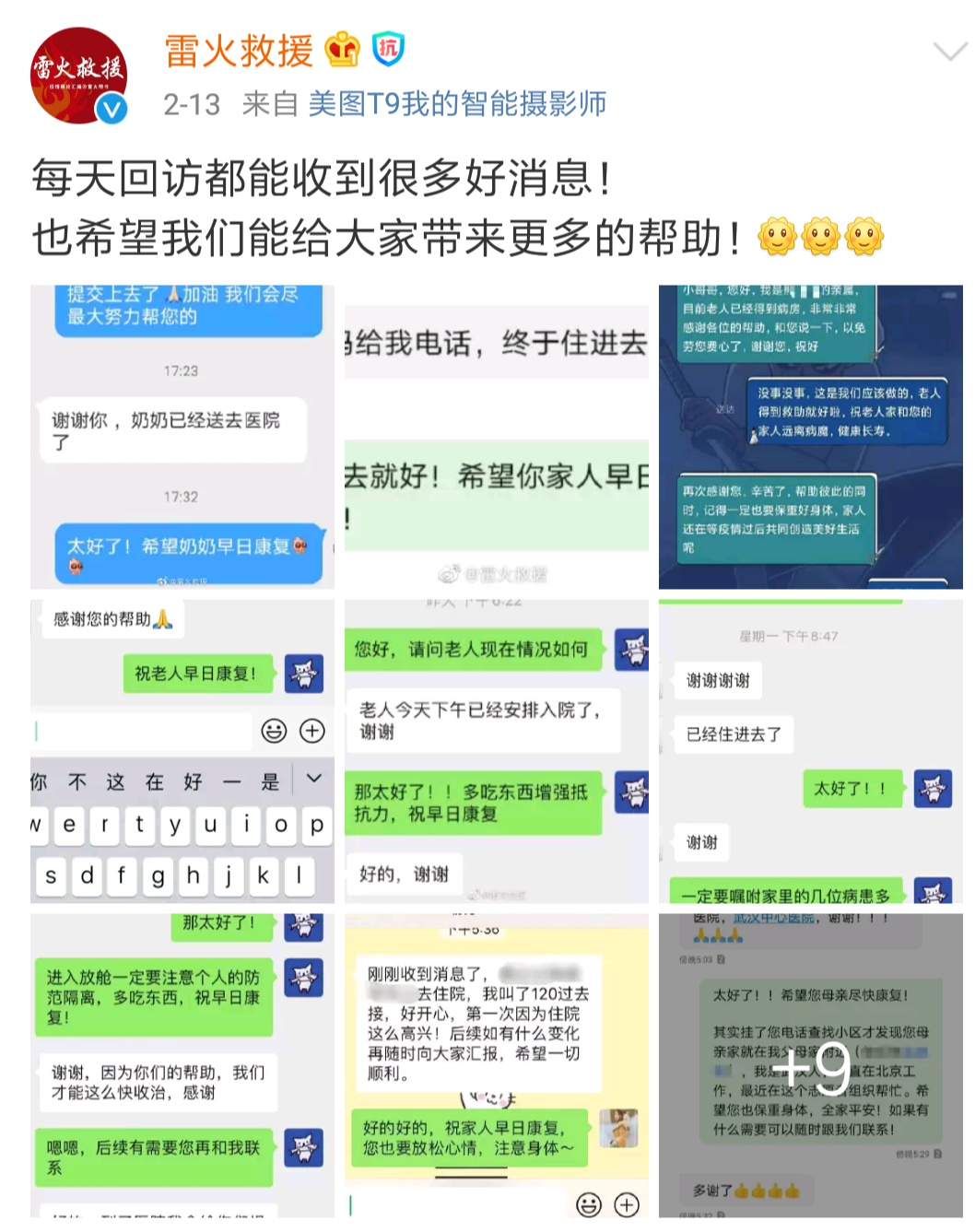 2019届本科校友张皓敏在内的约1000名志愿者的积极响应。2月1日“雷火救援队”成立,主要为救灾防疫提供信息支援,通过发现、核实、报送、回访四个步骤收集新冠肺炎患者的网络求助信息并及时反馈给有关部门,以帮助求助者尽快获得有效治疗。截至2月23日,雷火救援队已收录求助信息 2735条,累计通过微博、电话回访 2515 人,共协助救治933人。