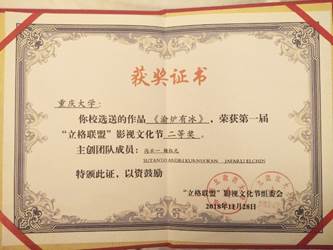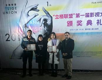 2016级本科生杨红元和黄思文同学作为获奖作品团队代表,应邀赴西安参与“立格联盟”影视文化节颁奖晚会。同行的还有国际学院的Elchin和Gohar两位留学生。