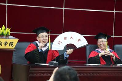 成为双一流大学的首届毕业生,更加任重而道远,所以我送大家八个字:博学笃行,求真开新。”