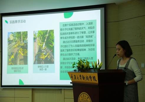 在实践教学环节,同学们通过观看纪录片《厉害了我的国》、参观红岩魂陈列馆革命基地以及各小组开展的形式多样的志愿实践活动,更直观更生动地感受到“爱国、团结、奋斗、奉献”的革命家精神和国家繁荣昌盛的自豪感。国家是个人与家庭最大的“梦工场”,只有“厉害了我的国”才会“幸福了我的家”。“红岩魂陈列馆内大量照片和文物,都向世人宣告国民党反动派惨无人道的恶行。我们深刻地感受到祖国今天的繁荣昌盛与革命先烈抛头颅洒热血的牺牲密不可分。”第五组代表陈曦说道。通过各自开展志愿活动,也让同学们懂得分享,通过弘扬善举,增强了社会责任感,并以实际行动参与社会公益、奉献爱心,传播正能量,力所能及地去帮助需要帮助的人。