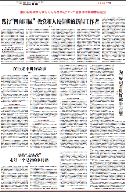 9月25日,《重庆日报》“思想”版(17版)编发了一组重庆新闻界学习践行习近平总书记“11·7”重要讲话精神体会的文章,全文刊登成人电影