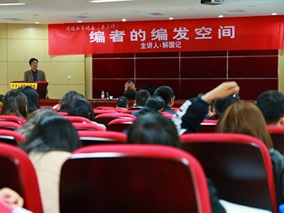 (解国记总编辑在讲座中)