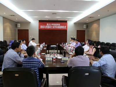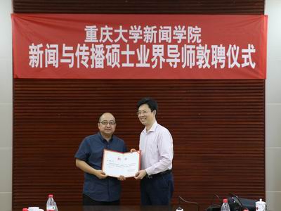 新闻与传播硕士业界导师敦聘仪式在主教学楼510室举行。重庆市记协常务副主席、重庆市摄影家协会主席冯建新,重庆日报集团总裁向泽映,重庆日报总编辑张小良、副总编辑姜春勇,重庆商报党委书记、总编辑陈兵,重庆广电集团总台副总裁、副总台长丁道谊,重庆广电集团副总裁黄翔,新华社重庆分社常务副总编黄豁等重庆媒体老总,以及成人电影