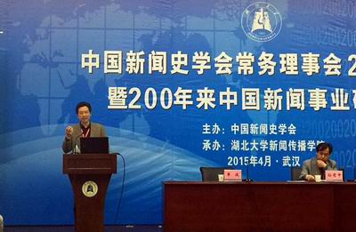 4月25日,中国新闻史学会常务理事会2015年会暨200年来中国新闻事业研讨会在湖北大学举行,来自中国人民大学、清华大学、北京大学、复旦大学、中国传媒大学、中国科学院、人民日报社与新华社等70多所高校、新闻研究机构及部分媒体100多名代表参加会议。我院董天策院长应邀请出席会议,担任大会主题发言评议人。