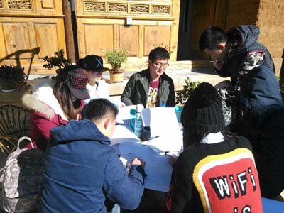 14名师生轮流总结后,学员们抓紧上午时间,根据带队老师张小强的建议,修改了上150份问卷,以便在丽江地区进行问卷采集。