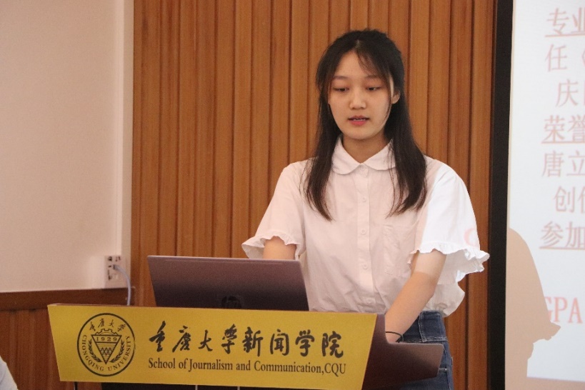 18级广播电视学专业张媛,着重分享了上海交通大学、武汉大学、中国传媒大学和北京大学的准备与考试情况。她建议大量阅读专业书籍如《传播学教程》《网络传播概论》《新闻学概论》《广告学概论》,同时可以通过考研的复习资料、各个高校的考研真题进行模拟演练;了解各个高校的不同背景情况和研究方向进行针对性的准备与复习;积极与报考学校导师提前联系,批判性理解目标导师的论文专著。