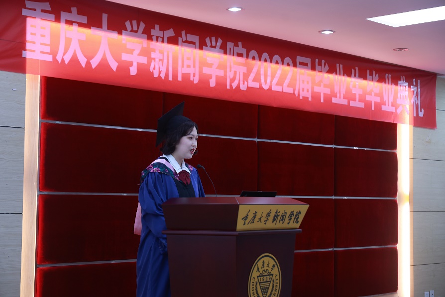 研究生代表方梓萱在典礼上发言。方梓萱作为本硕均在成人电影