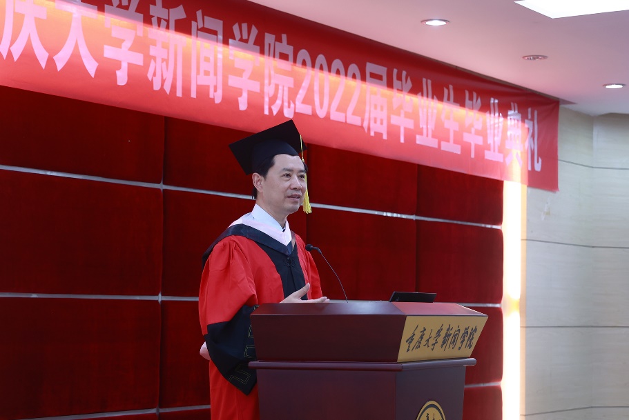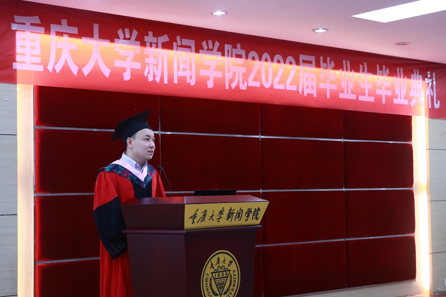 党委书记凌晓明、院长董天策、党委副书记陈娜、副院长郭小安、副院长龙伟等学院领导,以及部分教师、本科毕业生、研究生毕业生参加典礼。毕业典礼由党委副书记陈娜主持。
