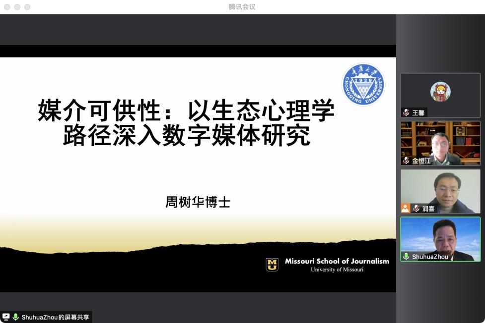 青年教师金恒江博士主持。来自海内外各大新闻传播院校的同学和老师在云端共同学习和交流。