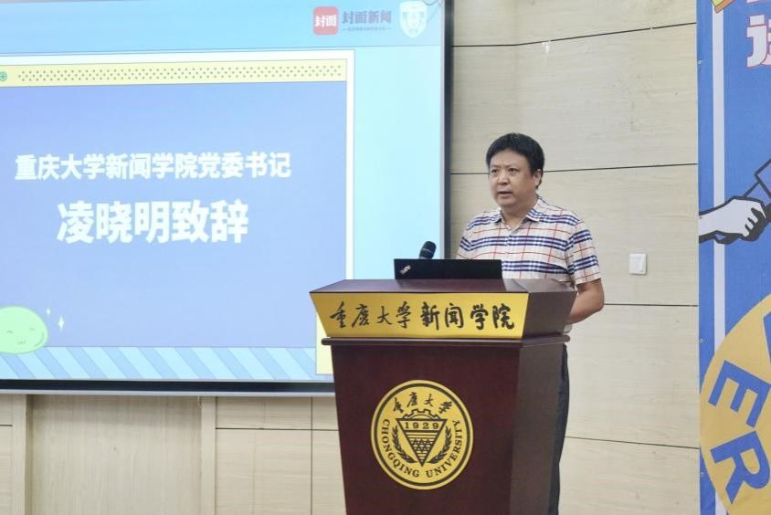党委书记凌晓明向封面新闻的各位嘉宾表示欢迎。他强调了新闻传播学近年来所受到的党和国家的重视,以及所面临的服务国家重大战略需求的巨大挑战。随着传播技术变迁和媒体融合向纵深发展,新闻舆论工作面临的新的挑战也给全媒体时代新闻传播人才的培养提出了新的、更高的要求。在新的时代背景下,推动新闻传播成长培养模式与教学实践模式的改革与创新,成为我们面临的一项重要的课题。他指出,本次活动正是通过与封面新闻的合作进行这一项课题的实践探索。最后,他希望同学们借助封面青年通讯团的平台和渠道,朝着具有全媒体新闻传播知识和能力的应用型、复合型、创新型人才,以及具有全球视野和跨文化传播能力的国际新闻传播人才的培养目标而奋发前行。