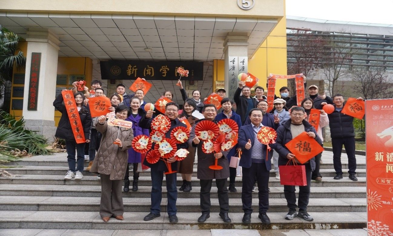 送贺卡、写春联、剪瑞龙、送福至在学院5楼工会小家热闹进行,学院党委书记凌晓明、院长郭小安和党委副书记陈娜一一为教职工们送上新春祝福。学院分工会主席魏媛、副主席李兴亮为老师们发放了新春贺卡和春联。这些贺卡、春联由学院老师们手书,内容是定制的个性化专属祝福。