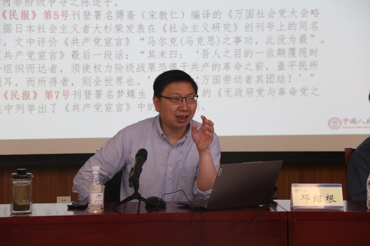 接下来,邓绍根教授分别从“五四时期青年毛泽东学新闻”“青年毛泽东干新闻”“思新闻:青年毛泽东的马克思主义新闻观开始形成”三个阶段全面而细致地阐述了毛泽东的新闻职业历程。邓绍根教授表示,“学新闻”阶段最典型的代表事例便是毛泽东成为北京大学新闻学研究会会员。北京大学新闻学研究会是中国第一个系统讲授、并集体研究新闻学的团体,著名新闻史学家戈公振所著《中国报学史》称之为:“中国报业教育之发端”。邓绍根教授列举了当时的新闻报道和相关档案材料等,证明了毛泽东获得了听讲半年之证书。毛泽东等人是北京大学新闻学研究会第一届会员,是中国首届接受新闻学教育和参与系统新闻学研究的新闻学子,是中国新闻教育开端和系统新闻学研究开端的历史见证者。