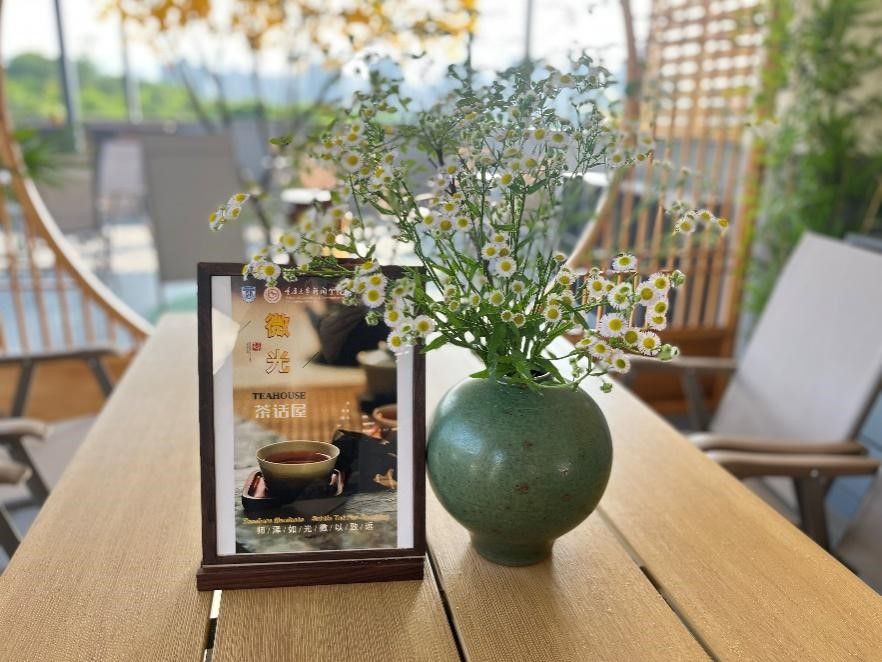 本次“馨家园”的升级改造资金主要来自于社会捐赠,地址选取了学院五楼近300平方闲置废弃露台,设立了厚积读书荟(取“博观而约取,厚积而薄发”之意)、师说新语谈心吧 (意为“言为士则,行为世范”)、博闻小讲堂(主旨是“博闻启智,乐教乐学”)以及微光茶话屋(取“师者如光 微以致远”之意)、“新视野”空中吧台。同时,“馨家园”还建设了羽毛球运动区和乒乓球场地,规划了图书阅览区、教职工文创展示区、教职工书画作品区等。