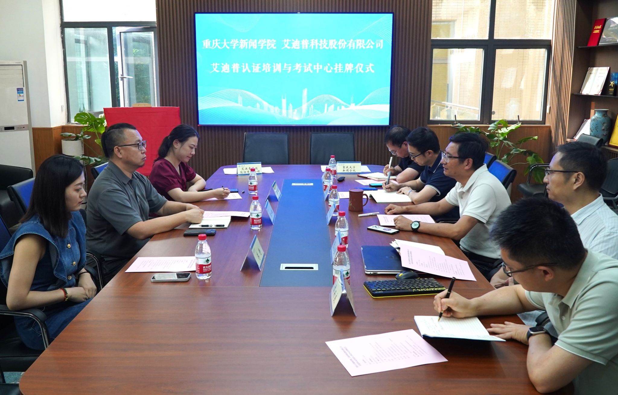 交流会结束后,郭小安院长和王一鹏总经理为艾迪普认证培训与考试中心揭牌。与会人员还就艾迪普认证培训与考试中心如何服务人才培养、业务流程、教学体系等细节进行了深入交流。