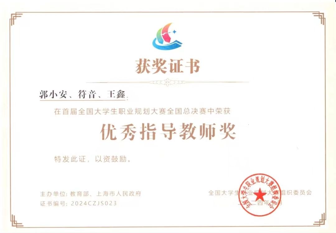 为贯彻落实党中央、国务院关于高校毕业生就业工作的决策部署,教育部和上海市人民政府共同举办了首届全国大学生职业规划大赛全国总决赛。我院郭小安教授和王鑫老师荣获首届全国大学生职业规划大赛全国总决赛优秀指导教师。