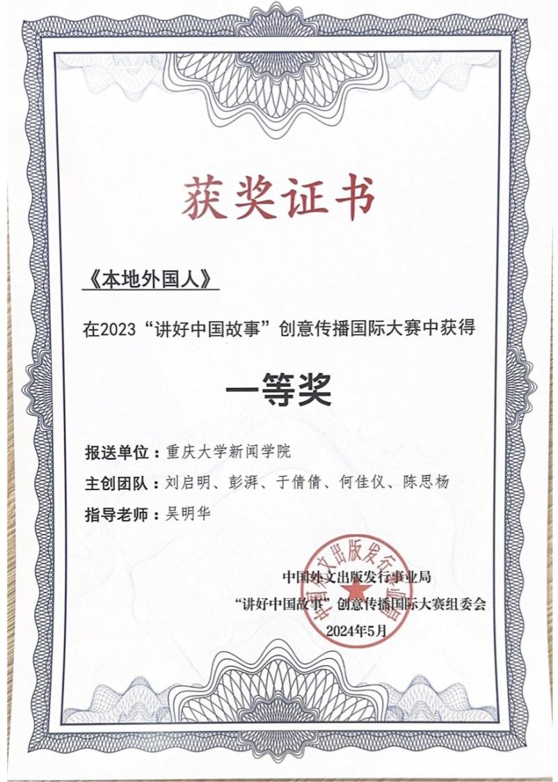 “讲好中国故事”创意传播国际大赛是以“讲好新时代中国故事”为主旨,面向国内外社会公众公开征集各领域中国故事、传播中国好声音、树立中国良好国际形象的年度官方品牌活动。本届大赛由中国外文局主办,当代中国与世界研究院、中国互联网成人电影(中国网)承办。我院吴明华副教授指导的作品“本地外国人”荣获2023年“讲好中国故事”创意传播国际大赛全国一等奖。