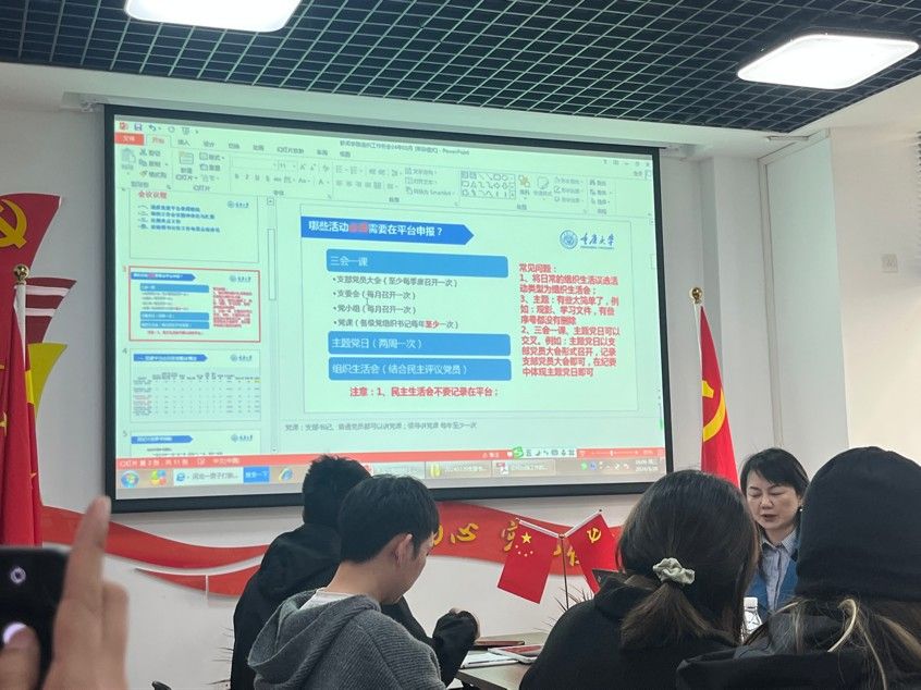 魏媛通报了党建平台使用情况,围绕学院各党支部开展组织生活情况,就活动出勤率、会议申请、会议纪要等规范工作进行了通报,对党务日常工作作了安排和简要培训。