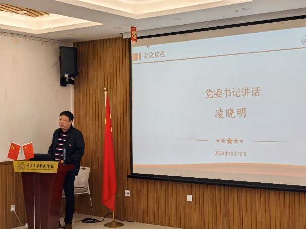 支部联系委员曾润喜副院长在会上发表了讲话。他对新一届党支部委员会的成立表示祝贺,希望他们能够在学院党组织的引领下,发挥团结协作、创新进取的精神,推动支部工作不断取得新的成绩。并对在座的党员同志提出了新的要求,希望大家能够不断成长,发挥党员的先锋模范作用。
