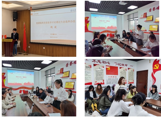 经过讨论,学院党委组织员魏媛老师宣读了大会选举办法并获得全体党员的一致赞成。此次选举以无记名投票的方式,差额选举三位党支部支委委员。在唐诗同志的主持之下,四位支委委员候选人依次发表竞选宣言,随后由有选举权的23名党员同志投票产生研究生五支部的支委委员会。