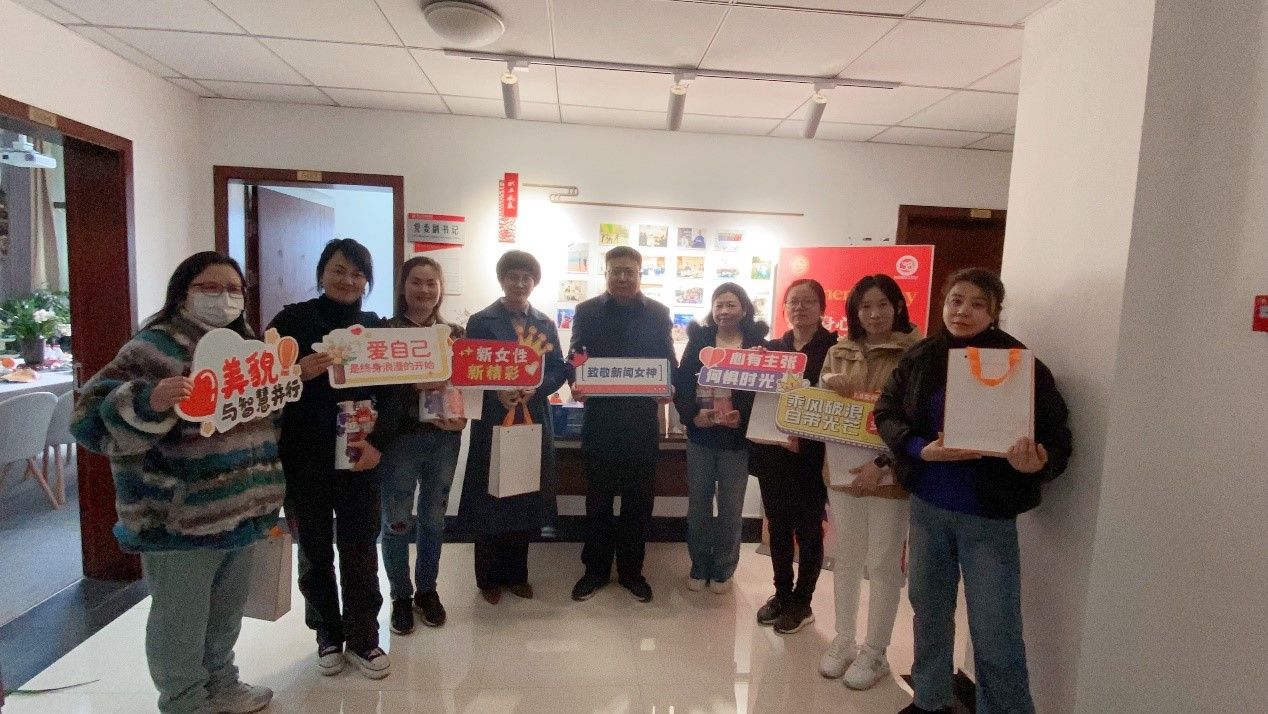 分工会组织全院女性教职工欢度妇女节,学院党委书记凌晓明书和副书记陈娜到场支持。