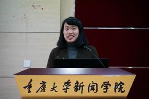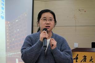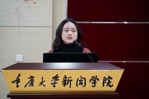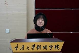 “行学千里,识致广大”是2016级本科生陈灵涵的分享主题。她介绍了浸会大学的教学方式以及大陆和香港学生间的差异与共性。她还分享了自己的心得体会,:“记者要报道有趣有价值的内容,吸引人们主动阅读。”