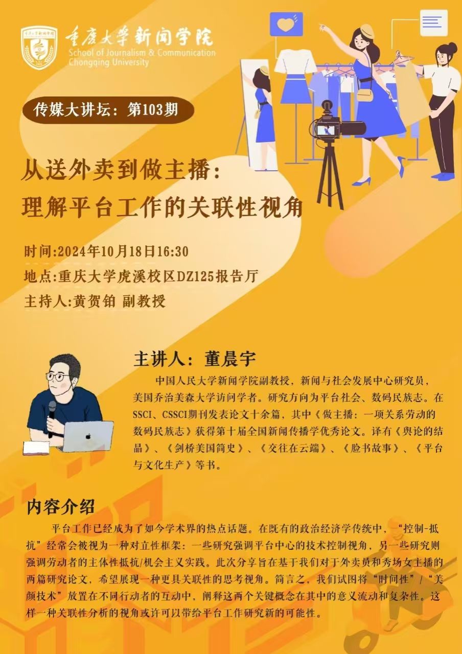 【传媒大讲坛】从送外卖到做主播:理解平台工作的关联性视角
